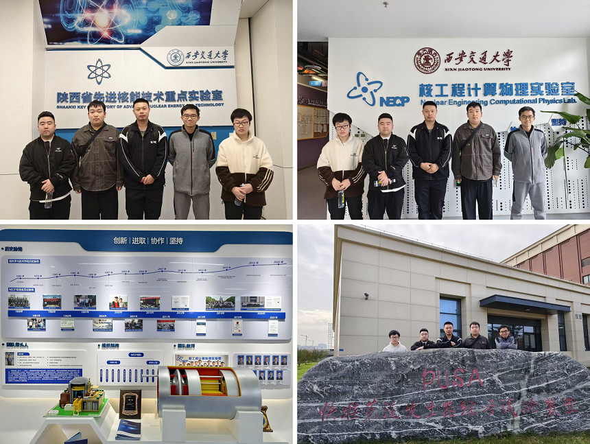 近日,2025级核能工程专业研究生校内专业课程已近尾声,为深化对核能事业多维内涵的理解,陕西省可控中子源工程中心组织学生分别赴西北工业大学军工素质教育实践中心、西安交通大学创新港核能小镇和陕西师范大学历史文化遗产保护教育部工程研究中心进行参观学习,开展了一场贯穿“精神锻造、技术创新与人文关怀”的深度研学之旅。此外,2025年11月8-9日,中心3位教师和5位核能工程专业的同学参与了陕西省核学会青年论坛。李伟老师作了分会报告,同学们对核能领域的前沿发展充满热情、求知若渴。此行不仅是一次知识的跨越,更是一次思想的洗礼,为同学们未来的职业生涯勾勒出更为立体和坚韧的轮廓。